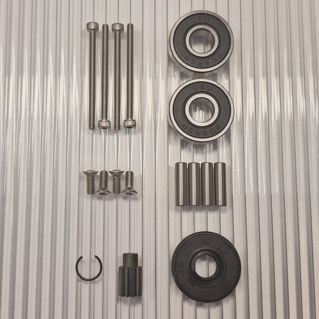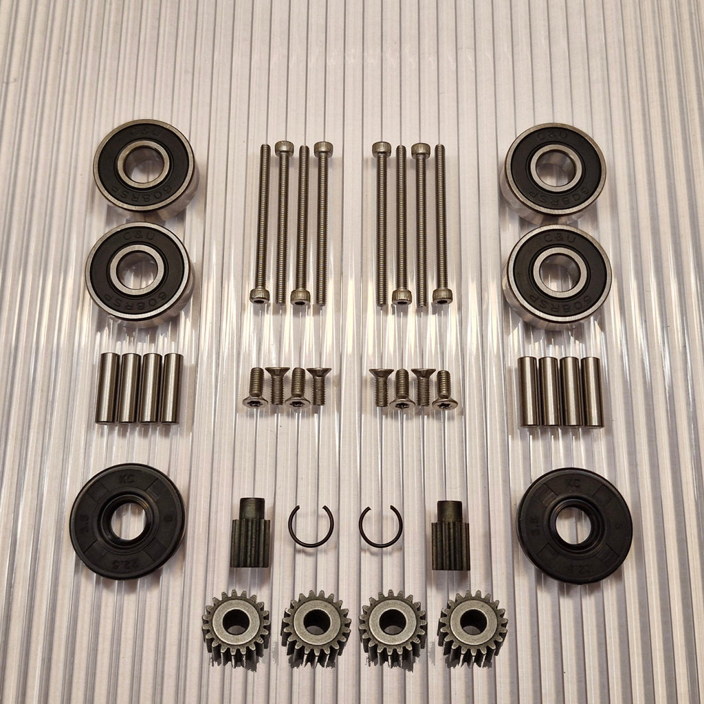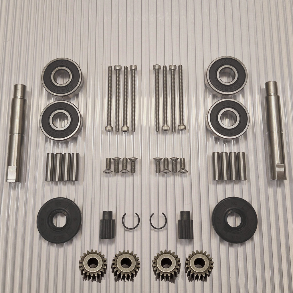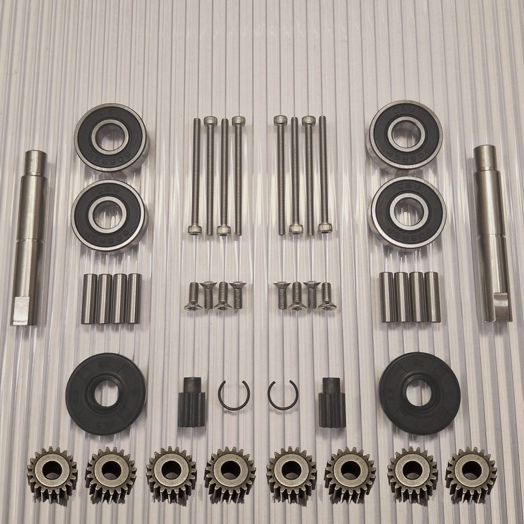 Gears made of hardened high-quality steel. New pins for the planet wheels closest to the wheel are included in the kit. Stainless screws with torx and allen key grips that do not slip.